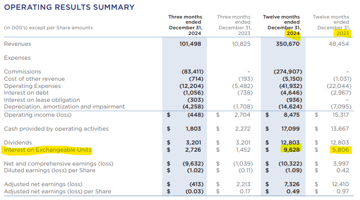 2024 was the first year of the new Bridgemarq, and results were mixed. EBITDA was about 10% higher than 2023, and cash flow from operating activities was about 25% higher. But that doesn’t account for any of the dilution used to pay for the deal.