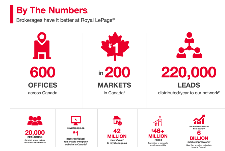 Royal LePage is the real beast here. It was founded by A.E. LePage in 1913, a man who wanted to focus more on service. It has more than 20,000 agents and some 670 offices across Canada. The company has the number two market share overall in the country, and it’s the leader in about 200 cities and towns. It also has the most trafficked real estate company website in Canada.