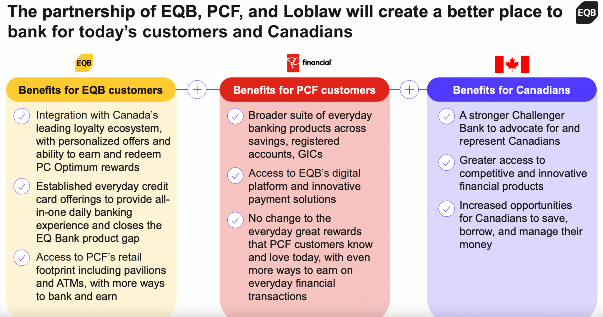 Investors cheered the deal; EQ Bank shares shot up more than 10% immediately after the deal was announced, and has maintained those gains.
