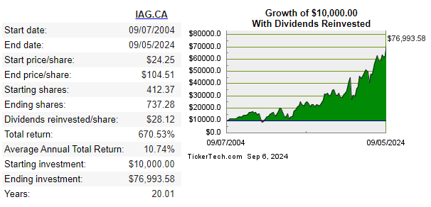 As it stands today, IA Financial pays out a $3.28 per share annual dividend. That’s good enough for a yield of just over 3%. Add in projected earnings growth of 7-10%, and I see a stock that could very easily return 10%+ on an annual basis for the next 20 years.