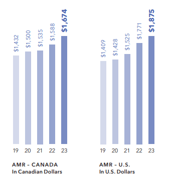 This is a summary of average rents charged in the last five years. As you can see, the company has successfully raised rents in both Canada and the United States. This is a trend that should continue over time.