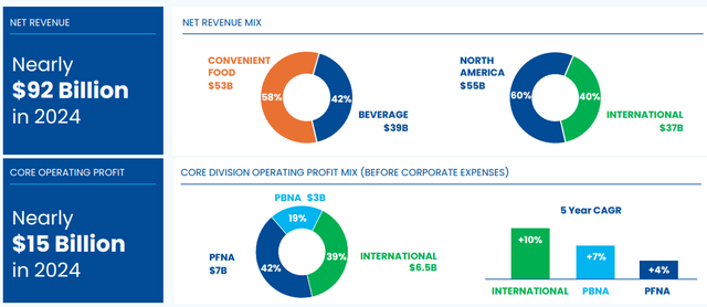 I'll also highlight the strong performance from the company's LATAM division, which is approximately 90% food sales, compared to just 10% beverage sales. Pepsi's operations in Latin America generated a 19% operating margin in 2024, with this strength driven mostly by potato chip sales. Sabritas is a strong brand, and the company basically owns potato chips in LATAM.