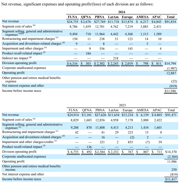 We'll also note that 2024 was a bit of a bad year for Frito Lay North America. In 2023, that part of the company generated 26.9% operating margins.