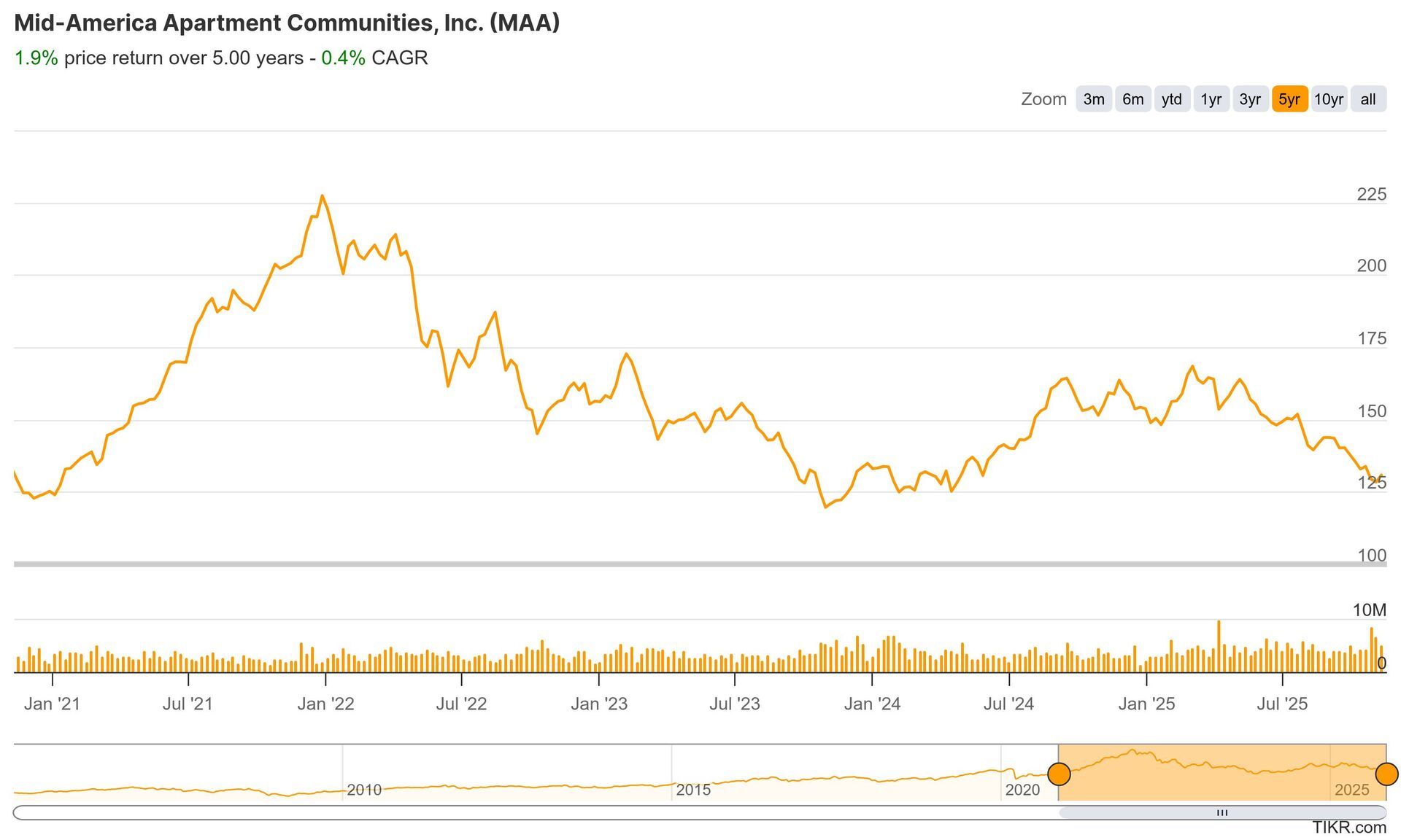 Today on the newsletter I want to highlight one REIT that I think is a quite good value today, Mid-America Properties (NYSE:MAA). Let’s take a closer look.