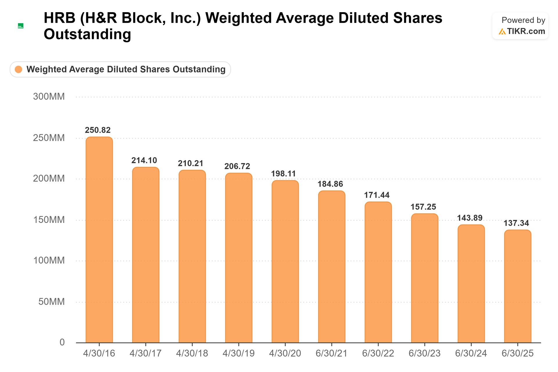 H&R Block has quietly repurchased nearly half of its shares outstanding in the last decade.