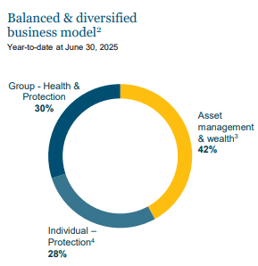 It is divided into three different divisions. The largest is the asset management and wealth division, which accounts for 42% of total company business. Its group insurance division is next, checking in at 30%. And the company's individual protection plans bring up the rear, at 28%.