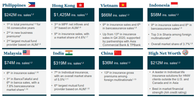 Operations are particularly strong in Hong Kong, India, and the Philippines. Although Sun Life is only a dominant player in a few different Asian markets, it's experiencing strong growth in pretty much the entire region as the proverbial rising tide lifts all boats.