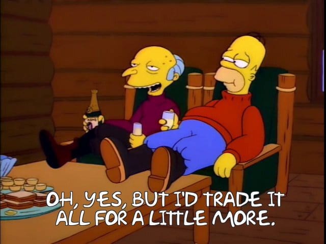 Let’s not kid ourselves here. Ultimately, I’d much prefer the extra $100k I’d have today by investing in McDonald’s. I’d rather have more money than less money. Or, as Mr. Burns so eloquently put it: