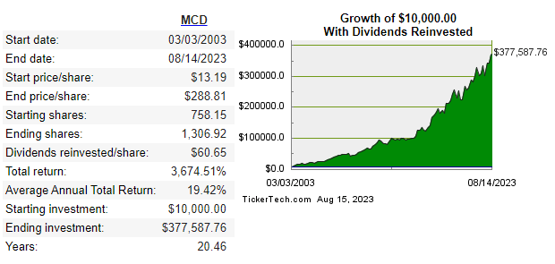 Alas, I didn’t get the chance. The stock spent all of about three days hovering around $13 before quickly rocketing higher. It was back above $20 before the end of the year and was above $60 just five years later. As I write this, McDonald’s shares are trading for approximately $289 each, good enough for a return of 19.42% annually from the 2003 lows. My potential US$2,600 investment would be worth something like US$100,000 today if I pulled the trigger.