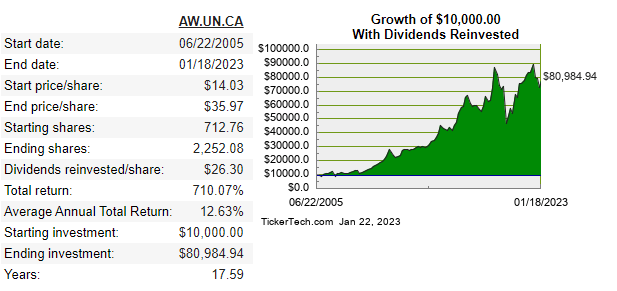 I can’t believe it took me until almost the end to bring up A&W Revenue Royalties Trust (TSX:AW.un).